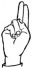 На ћирилици написано АНГЕЛИНА ПАВКОВ састоји се из 14 слова [?]. Исписано ћириличном једноручном азбуком за глувонеме: